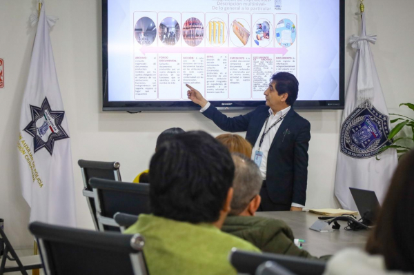 CIUDAD DE PUEBLA, Pue.– Con el propósito de fortalecer la transparencia, optimizar la gestión documental y garantizar el adecuado resguardo de la información pública, personal administrativo y operativo de la Policía Auxiliar recibió capacitación en materia de “Conceptos Básicos de Archivo e Integración de Expedientes”.